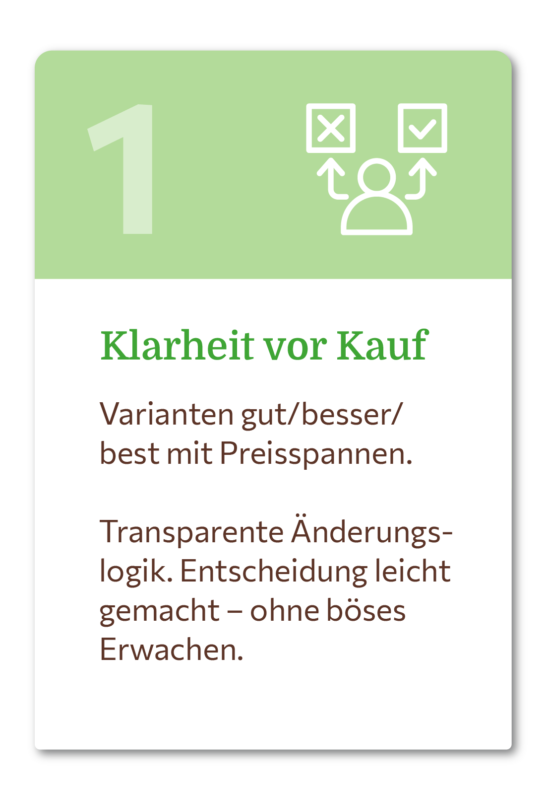 Fester Ansprechpartner, verständliche Optionen, transparente Preisrange – Entscheidungen fallen leicht.