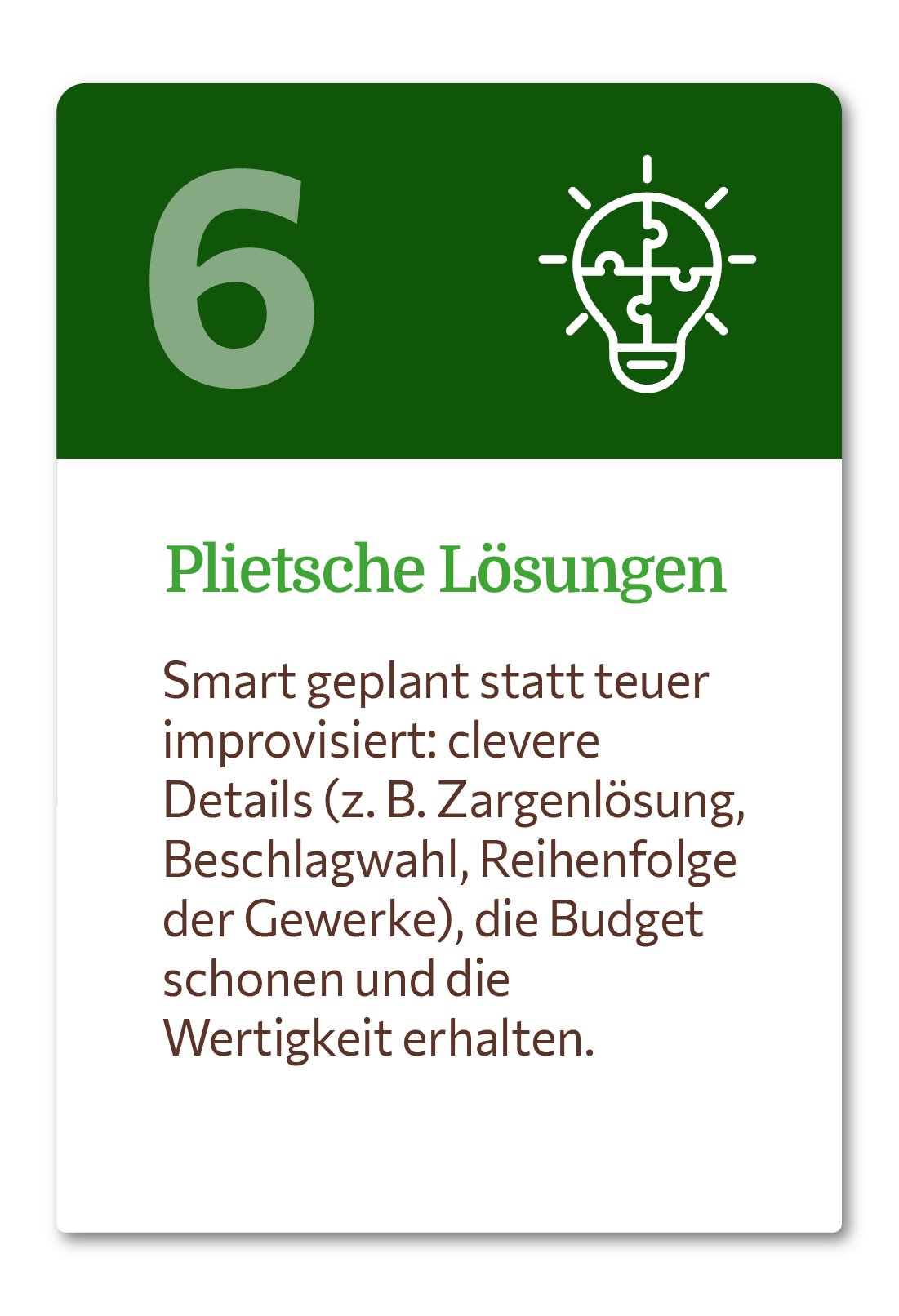 Plietsch geplant, klar kalkuliert und mit Leidenschaft realisiert.